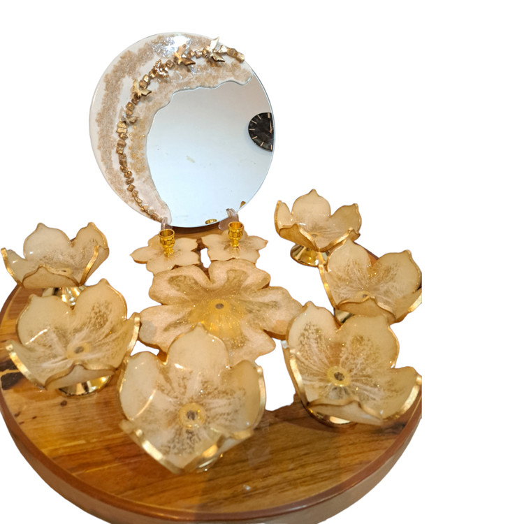 ست هفت سین رزینی عسلی دلرای اینه سایز۳۰با ۶ عدد پیاله پایه دار دوعدد جا شمعی وزیر سبزه عید بسیار زیبا وخوش رنگ زینت بخش منزل شما وقطعا جلوه خاصی به دیزاین شب عید شما خواهد داد