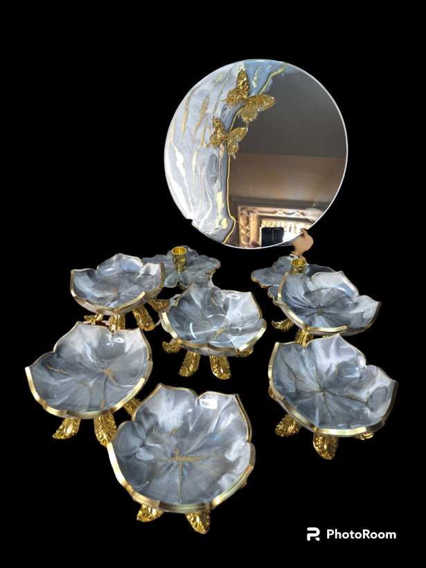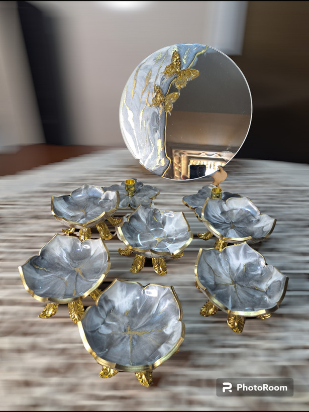 ست هفت سین به رنگ سفید طوسی پایه فلز مدل اختاپوس