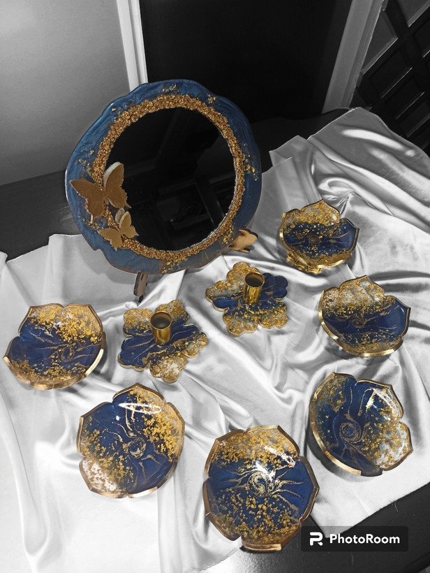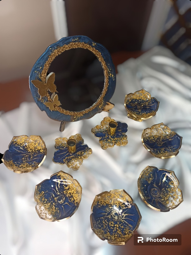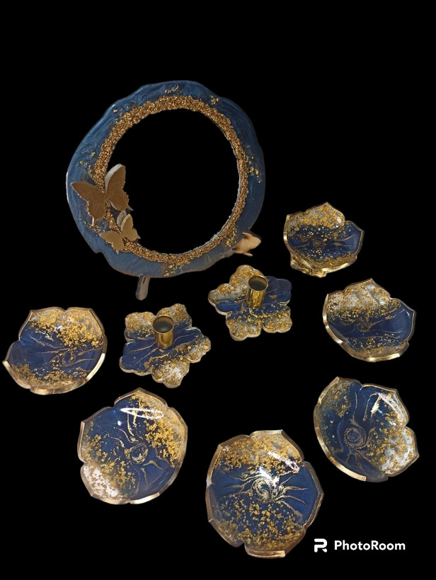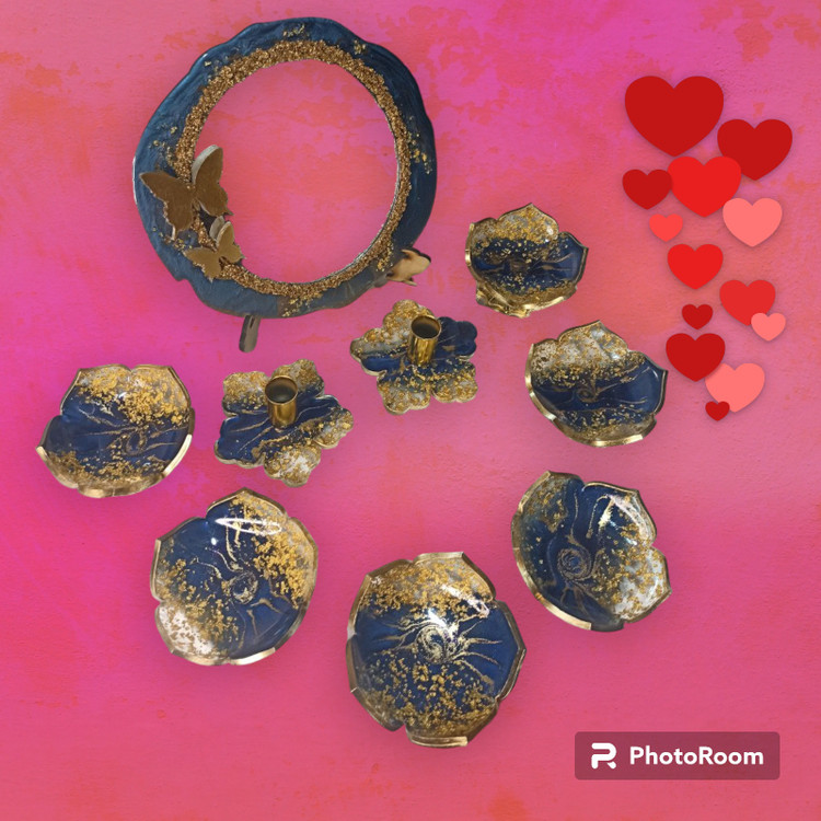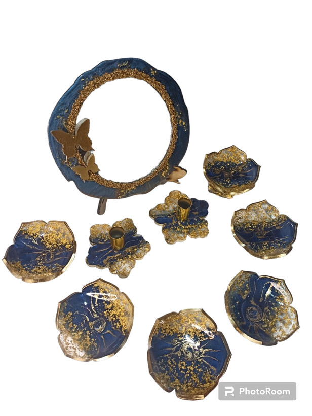 ست هفت سین رزینی رنگ لاجوردی با ورق طلا