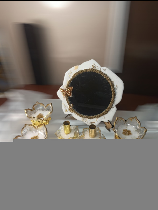 این ست تمام رزینی شامل شش عدد پیاله ۱۵سانت دوعد جاشمعی واینه ۳۰سانتی با پایه میباشدماسفارشات شما عزیزان رو باهر طرح ورنگی با انواع پایه های دلخواهتون پذیرا هستیم تولیدی زرین رزین با تولید انواع ظروف رزینی بدلیجات گیفتهای عروسی جاکلیدی جاحلقه خط کش نقاله گونیا جاکلیدیهای اکواریومی انواع ساعتهای دیواری رومیزی در اندازه های مختلف در خدمت هموطنان عزیز میباشد ارسال به سراسر کشور