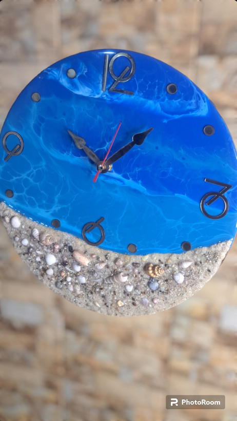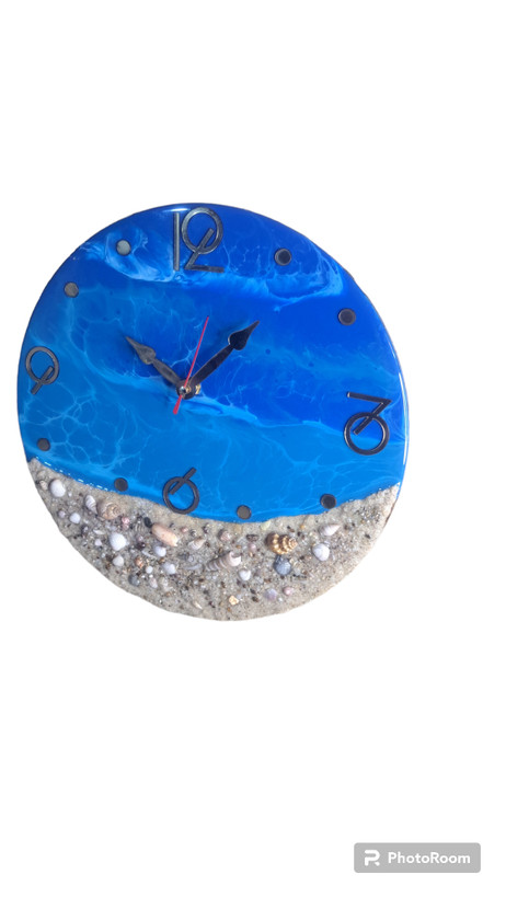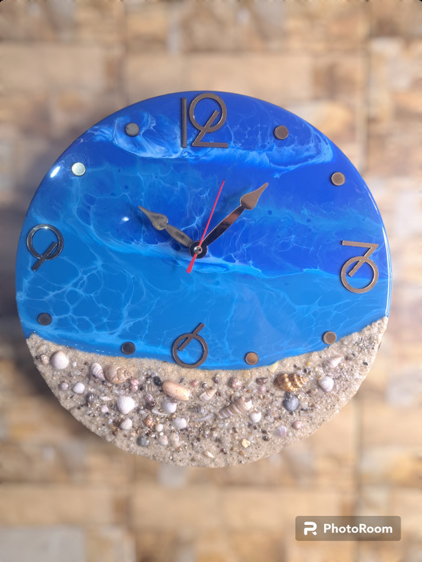 ساعت دیواریرزینی سایز ۳۰برروی بیس چوبی بضخامت ۸میل بارزین اپوکسی اجرا شده است