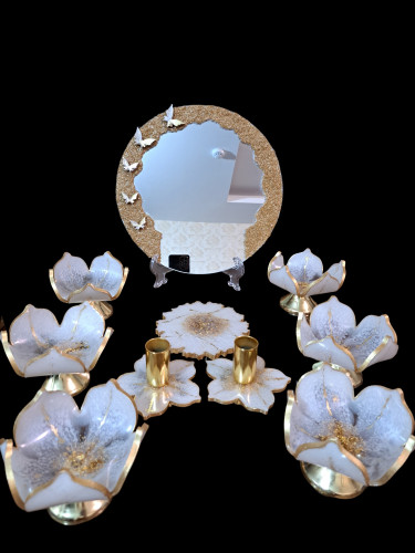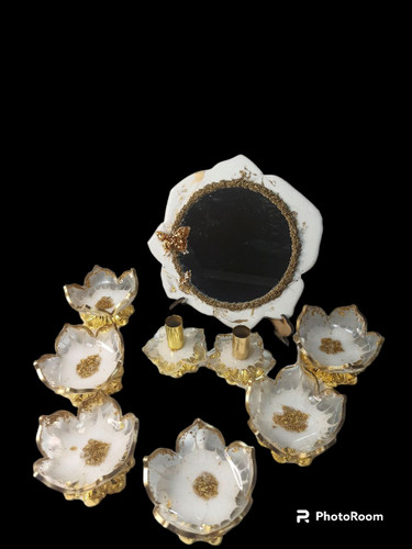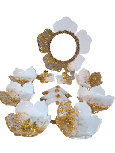 ست سفره هفت سین تماما رزینی سفید با ورق طلا