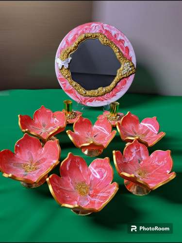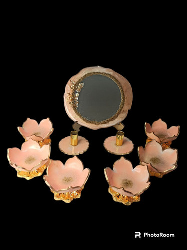 ست هفت سین رزینی رنگ سال هلویی باپایه فلزی بالرین